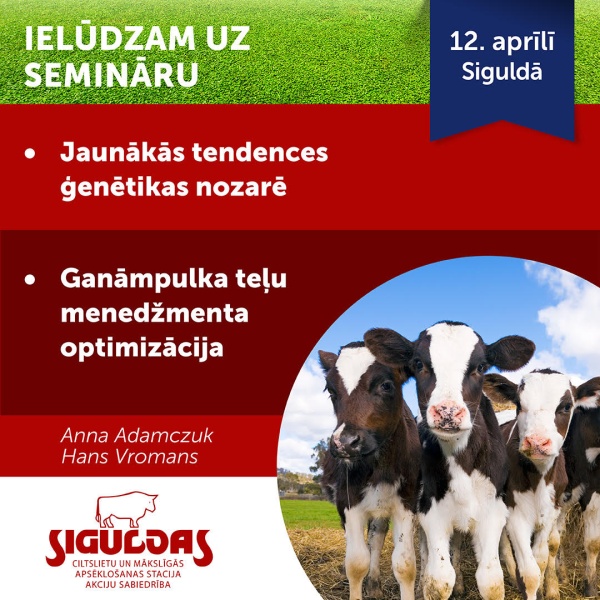 12. aprīlī Siguldā notiks Siguldas CMAS rīkots seminārs liellopu audzētājiem ar ārvalstu lektoru piedalīšanos.