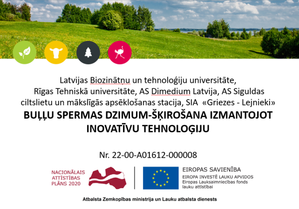 Latvijas Biozinātņu un Tehnoloģiju universitātes (LBTU) Veterinārmedicīnas fakultātes (VMF) pētnieki kopīgi ar ar Rīgas Tehniskās universitātes (RTU) Mašīnzinību, transporta un aeronautikas fakultātes (MTAF) Biočipu Zinātniskās Laboratorijas zinātniekiem, kā arī Kurzemes ciltslietu mākslīgās apsēklošanas stacijas (CMAS), AS Dimedium un Siguldas mākslīgās apsēklošanas stacijas speciālistiem, SIA Griezes Lejnieki personālu, kā partneriem, jau vairāk kā gadu realizē ELFLA  projektu Nr. 22-00-A01612-000008 “Buļļu spermas dzimumšķirošana izmantojot inovatīvu tehnoloģiju”.