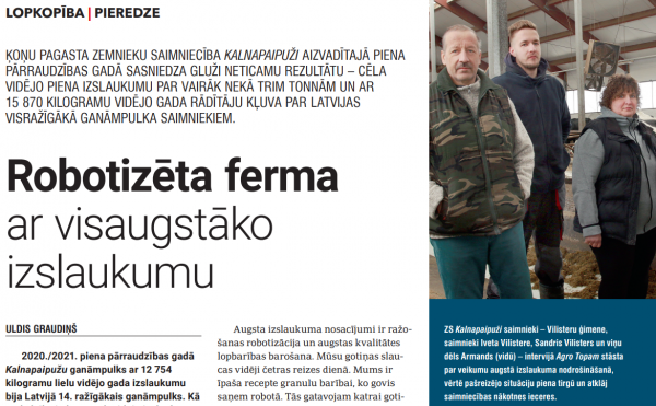 Plašu interviju ar ZS Kalnapaipuži saimniekiem lasiet žurnāla Agro Tops šī gada marta numurā vai, lai lasītu rakstu PDF formātā, spiediet šeit.